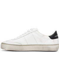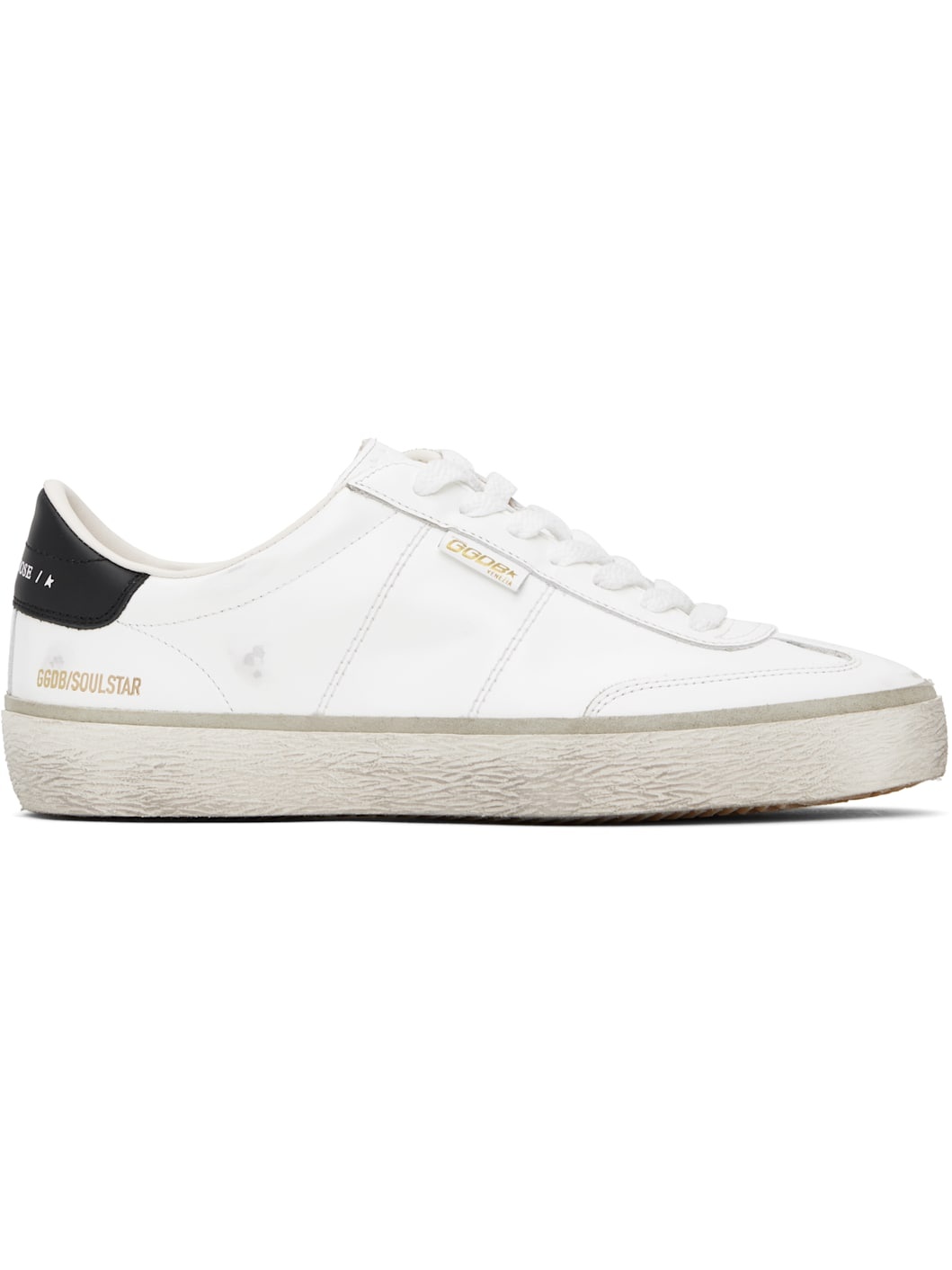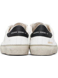 Handcrafted low-top buffed leather sneakers in white. · Smudging throughout · Lace-up closure · Logo stamp and star embossed at padded tongue · Padded collar · Logo stamp at vamp · Logo stamp at outer side and heel tab · Terrycloth lining · Treaded rubber sole Supplier color: White/Black Upper: leather. Sole: rubber. Made in Italy 252264M237001
