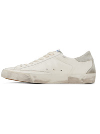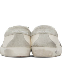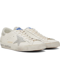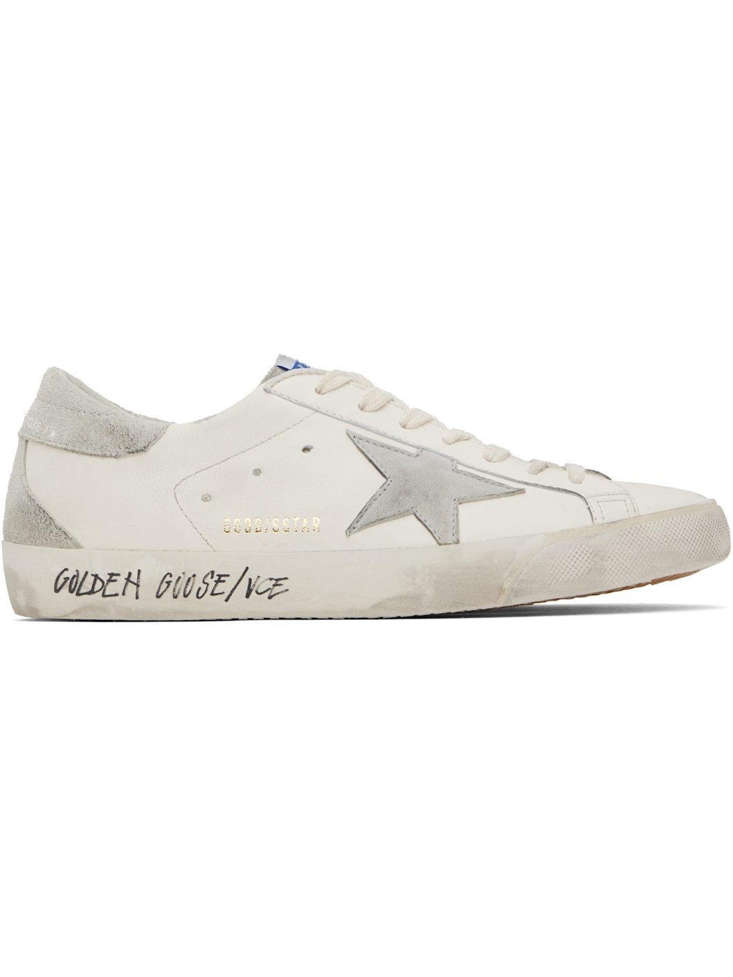 Handcrafted low-top grained sheepskin sneakers in white. · Smudging and subtle distressing throughout · Lace-up closure · Logo flag at tongue · Padded collar · Perforations at sides · Star applique and logo stamp at outer side · Logo stamp at suede heel tab · Buffed leather, suede, and terrycloth lining · Treaded rubber sole Supplier color: White/Ice/Grey Upper: sheepskin, leather. Sole: rubber. Made in Italy 251264M237074