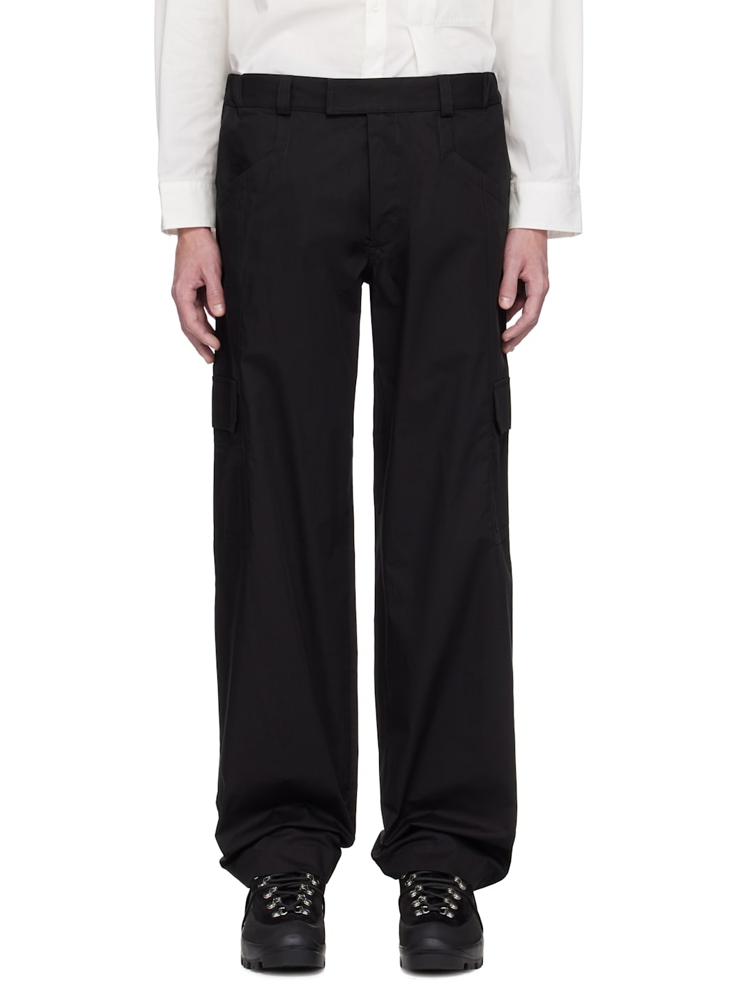 Cotton poplin cargo pants. · Velcro tab at partially elasticized waistband · Four-pocket styling · Zip fly · Flap pocket at outseams Supplier color: Off black Body: 100% cotton. Lining: 100% cotton. Made in Italy 251310M188000