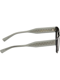 Rectangular acetate-frame sunglasses. · Gray lenses · Logo etched at lens · Integrated nose pads · Engraved logo pattern at core wires · Logo stamp at temple tips · Includes case · Size: 53.21 145 Color: Black/Black/Grey Acetate. Made in Italy 261451M134064