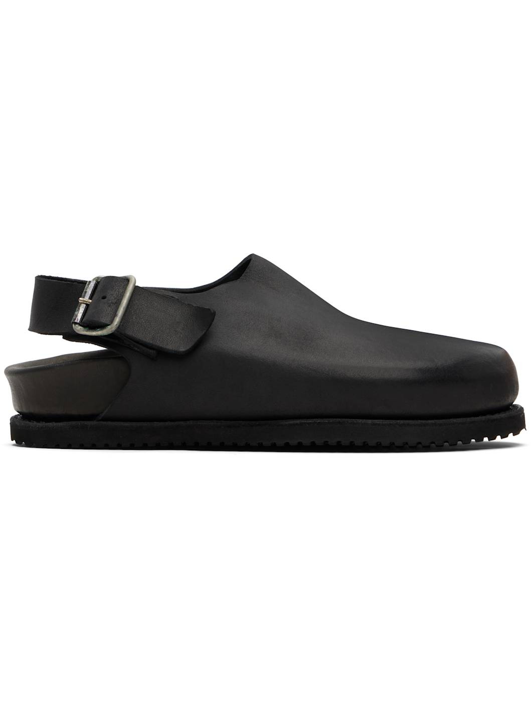 Grained calfskin slip-on loafers. · Pin-buckle slingback strap · Logo embossed at molded leather footbed · Vibram® treaded rubber sole Supplier color: Black Upper: calfskin. Sole: rubber. Made in Italy 251703F121004