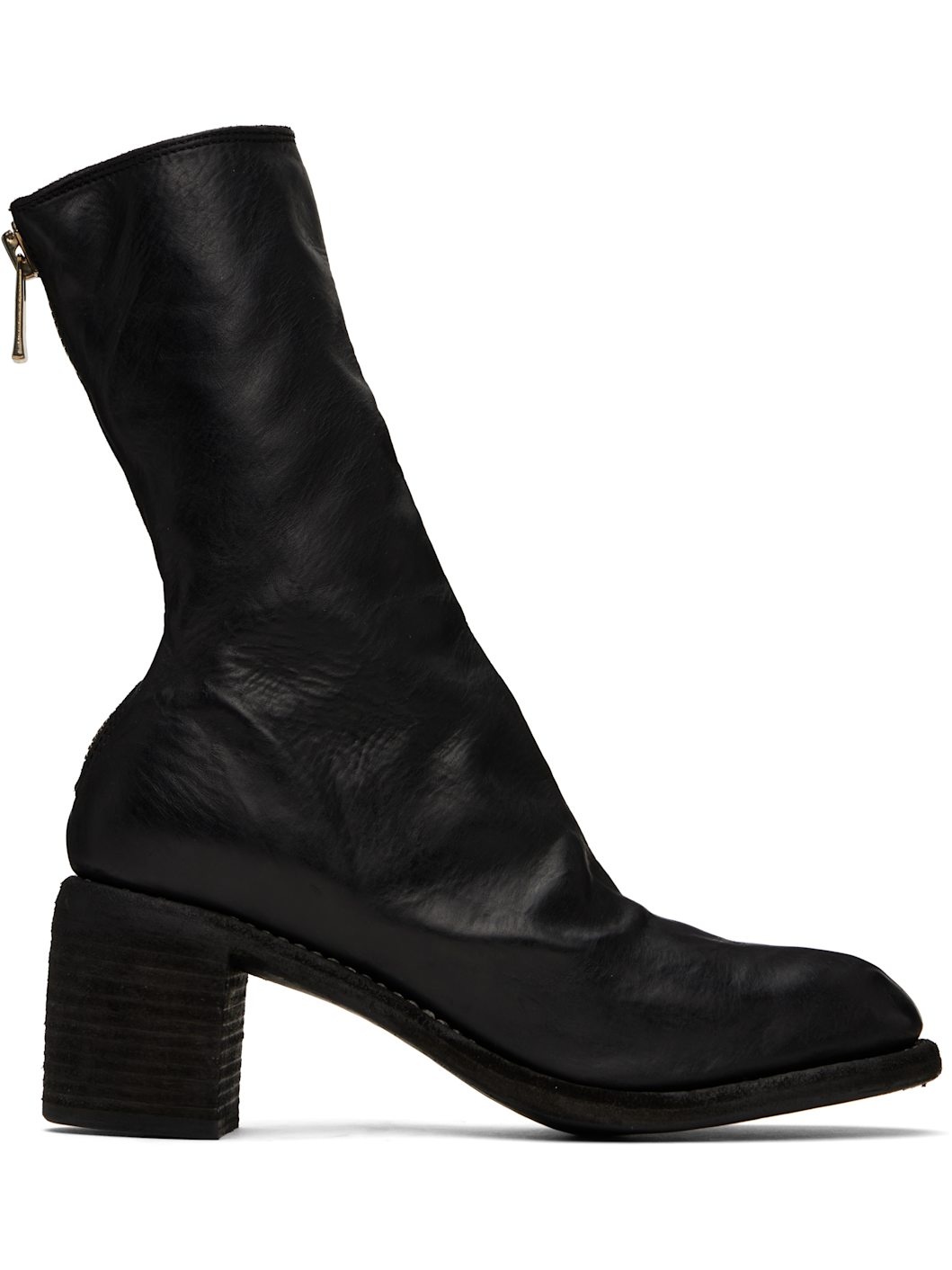 Ankle-high full-grain horse leather boots in black. · Zip closure at heel · Topstitching at Goodyear welt · Stacked leather block heel · Leather sole · Logo-engraved oxidized silver-tone hardware · Heel: H2.5" Supplier color: Black Upper: horse leather. Sole: leather. Made in Italy 251703F113000