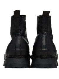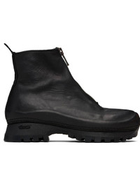 Ankle-high full-grain horse leather boots. · Object-dyed · Zip closure at vamp · Pull-tab at heel collar · Treaded Vibram® rubber sole · Logo-engraved antiqued silver-tone hardware · Heel: H1.5" Supplier color: Blkt Upper: horse leather. Sole: rubber. Made in Italy 252703F113008