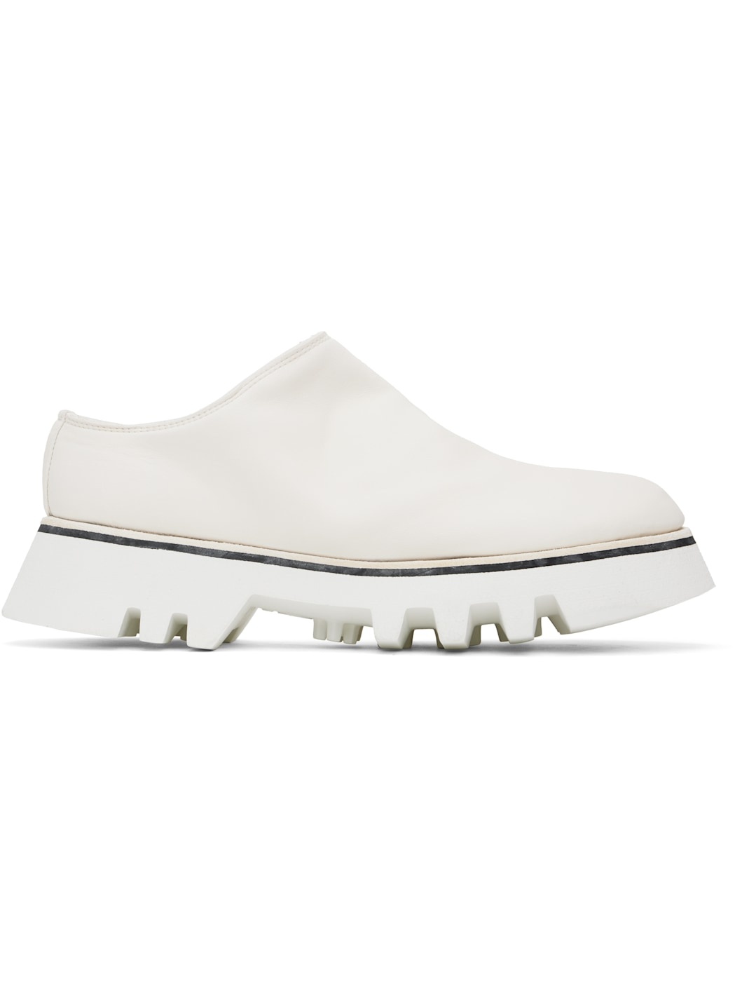 Grained horse leather slip-on loafers in white. · Foam rubber platform midsole · Treaded Vibram® Vi-Lite rubber sole · Platform: H1.75" Supplier color: White Upper: horse leather. Sole: rubber. Made in Italy 242703F121002