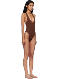 Stretch nylon jersey one-piece swimsuit. · OEKO-TEX®-certified · UPF 50+ protection · Scoop neck · Racer back · Fully lined Supplier color: Brauna brown 87% polyamide, 13% elastane. Made in Brazil 252207F103008