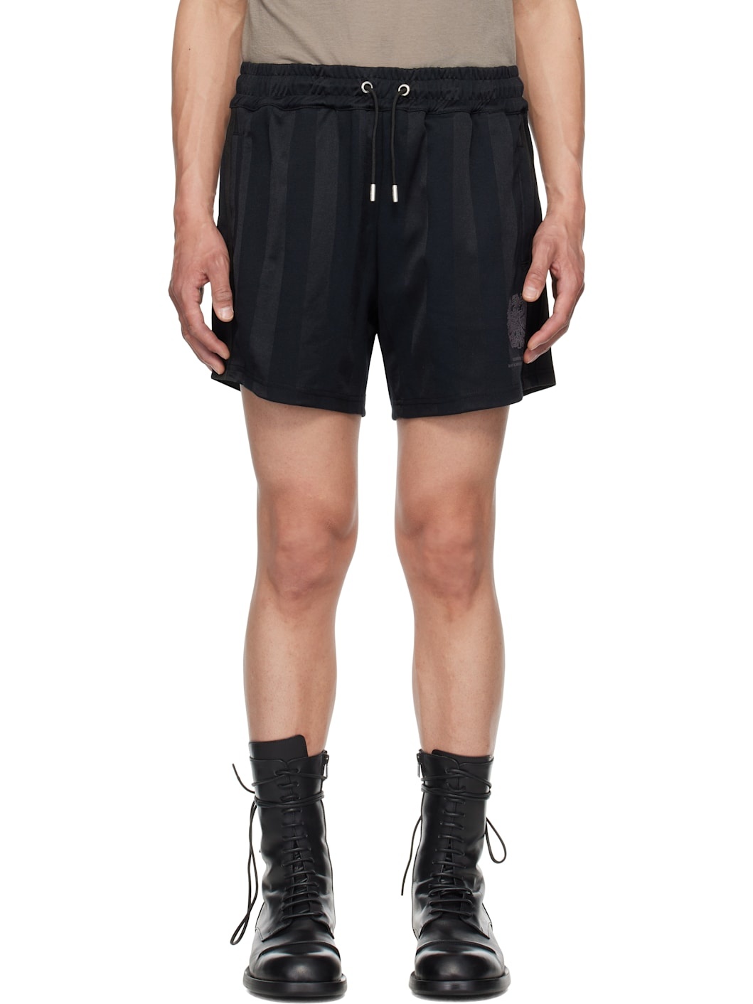 Polyester- and cotton-blend jersey shorts. Jacquard stripes throughout. - Drawstring at elasticized waistband - Three-pocket styling - Logo graphic printed at front - Striped knit trim at outseams Supplier color: Black
