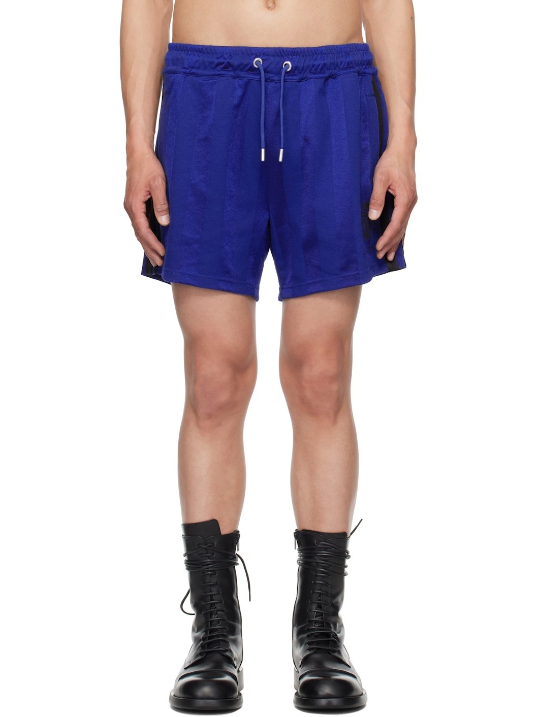 Polyester- and cotton-blend jersey shorts. Jacquard stripes throughout. - Drawstring at elasticized waistband - Three-pocket styling - Logo graphic printed at front - Striped knit trim at outseams Supplier color: Royal blue