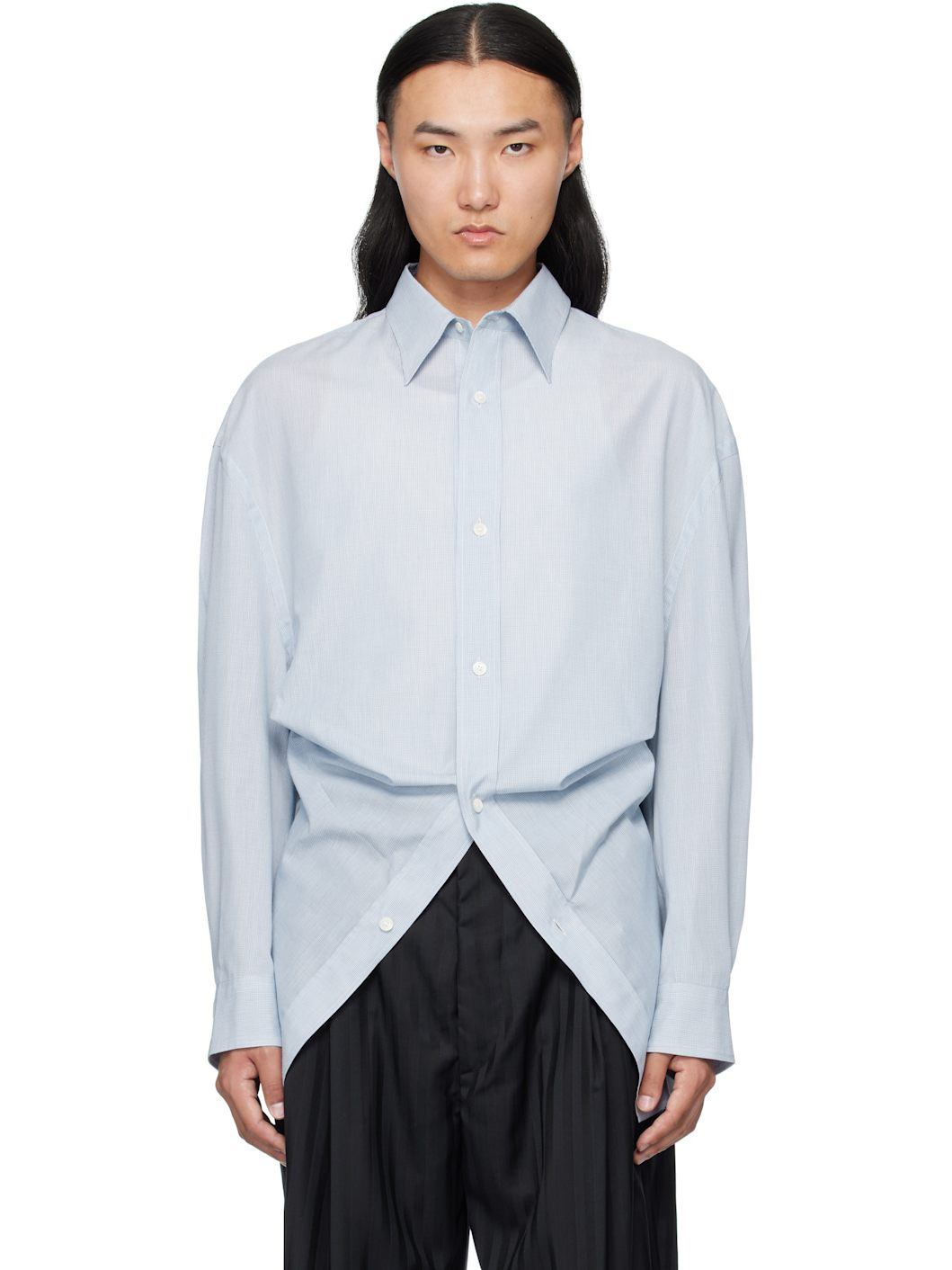 Lightweight cotton poplin shirt. · Semi-sheer · Button closure · Modified hem · Dropped shoulders and armscyes · Buttoned barrel cuffs Supplier color: Light/Pastel blue 65% polyester, 35% cotton. Made in Italy 252897M192007