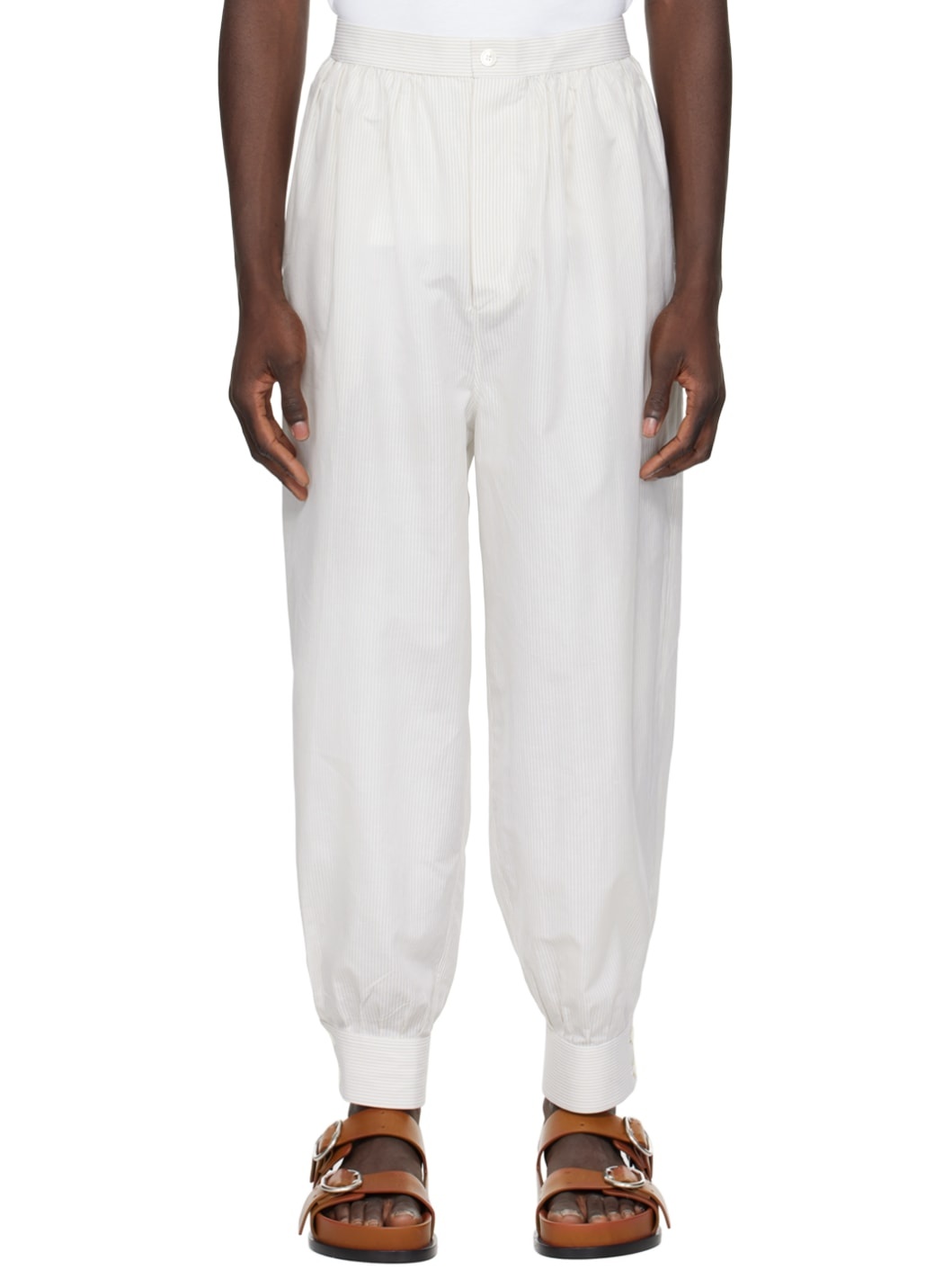 Cotton- and linen-blend poplin trousers. Stripes throughout. · Gathering at waistband and cuffs · Two-pocket styling · Button-fly · Buttoned vent at cuffs Supplier color: Natural 68% cotton, 32% linen. Made in Italy 241897M191000
