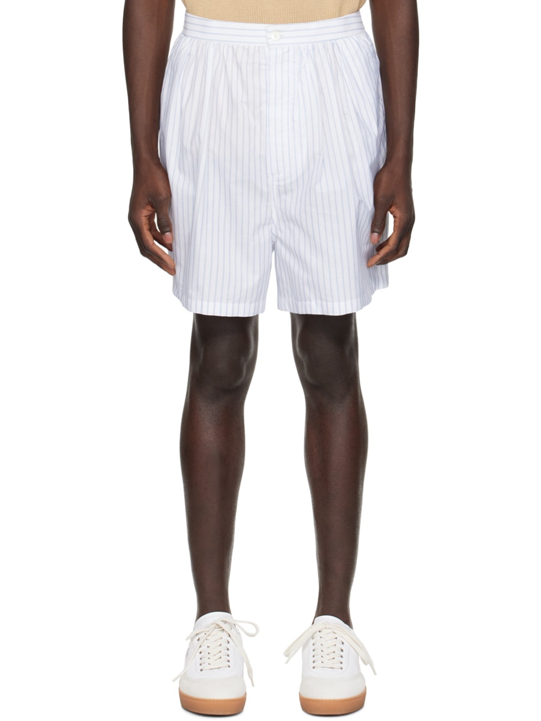 Cotton poplin shorts. Stripes throughout. · Gathering at waistband · Two-pocket styling · Button-fly Supplier color: Natural 100% cotton. Made in Tunisia 241897M193000