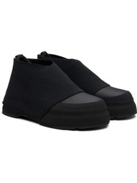 Mid-top mesh and polished calfskin sneakers. · Pull-loop at heel collar · Zip closure at heel · Buffed leather lining · Rubber trim at welt · Treaded rubber sole Supplier color: Leather black Upper: calfskin, textile. Sole: rubber. Made in Italy 252295M237001