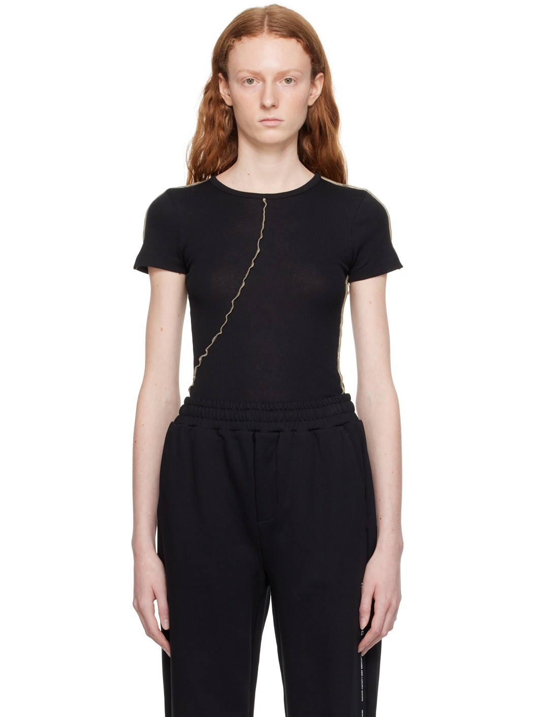 Rib knit cotton T-shirt. Exposed seams throughout. · Crewneck · Cutout at back Supplier color: Basalt black 100% cotton. Made in Portugal 232154F110033