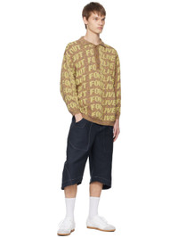 Knit cotton-blend polo. Jacquard text throughout. · Rib knit spread collar, hem, and cuffs · Three-button placket · Corozo hardware Supplier color: Yellow melange 70% cotton, 20% polyamide, 10% polyester. Made in Bulgaria 241392M212001