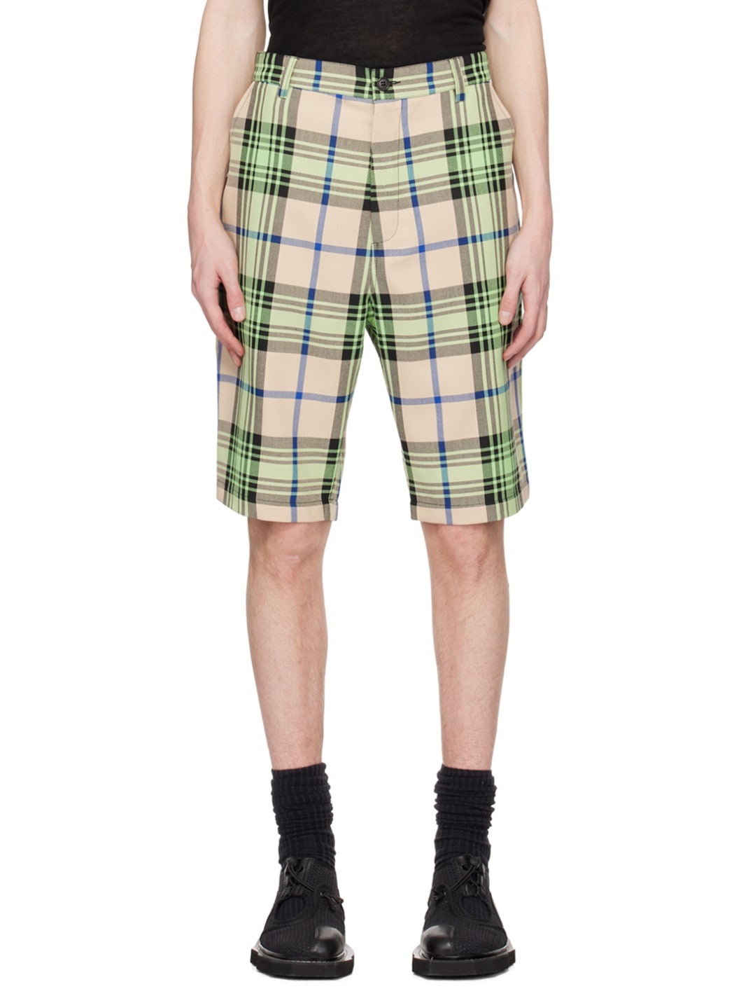 Polyester-blend twill shorts. Check pattern throughout. · Belt loops · Three-pocket styling · Zip-fly · Unlined · Contrast stitching in black Supplier color: Mint beige check 70% polyester, 30% viscose. Made in Bulgaria 241392M193002