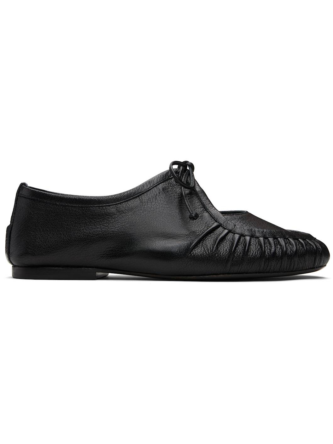 Handcrafted grained lambskin loafers. · Pleats at moc toe · Cutout at vamp · Self-tie closure · Stacked calfskin heel · Calfskin sole with rubber injections Supplier color: Black Upper: lambskin. Sole: calfskin, rubber. Made in Spain 252991F120000