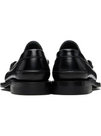 Handcrafted buffed calfskin loafers. · Moc toe · Woven detailing at vamp · Pinched seam at heel counter · Suede interior · Stacked calfskin heel · Calfskin sole Supplier color: Black Calfskin. Made in Spain 252991F121012