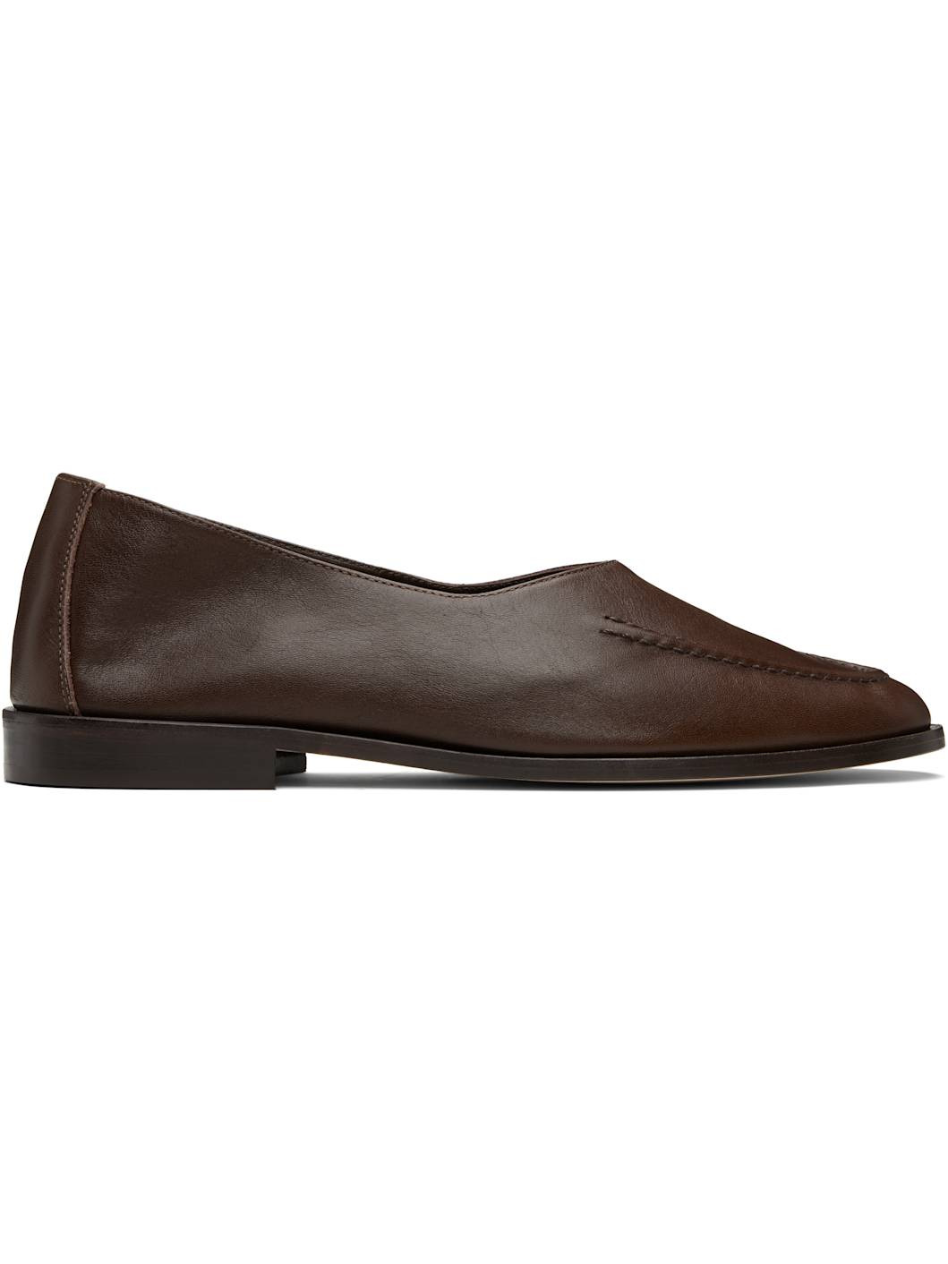Handcrafted grained calfskin loafers. · Moc toe · Suede interior · Stacked calfskin heel · Calfskin sole Supplier color: Dark brown Calfskin. Made in Spain 252991M231005