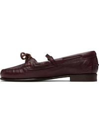 Handcrafted grained lambskin loafers. · Moc toe · Self-tie closure · Pin-buckle strap at vamp · Lace-up detailing at collar · Pinched seam at heel counter · Stacked calfskin heel · Calfskin sole Supplier color: Burgundy Upper: lambskin. Sole: calfskin. Made in Spain 252991F121000