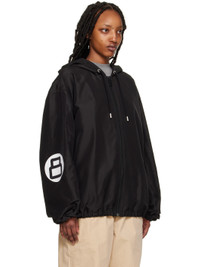 Polyester taffeta jacket. · Drawstring at hood · Zip closure · Seam pockets · Elasticized hem and cuffs · Embroidered logo patch at elbows and back · Logo patch at cuff Supplier color: Black 100% polyester. Made in Italy 231967F063002