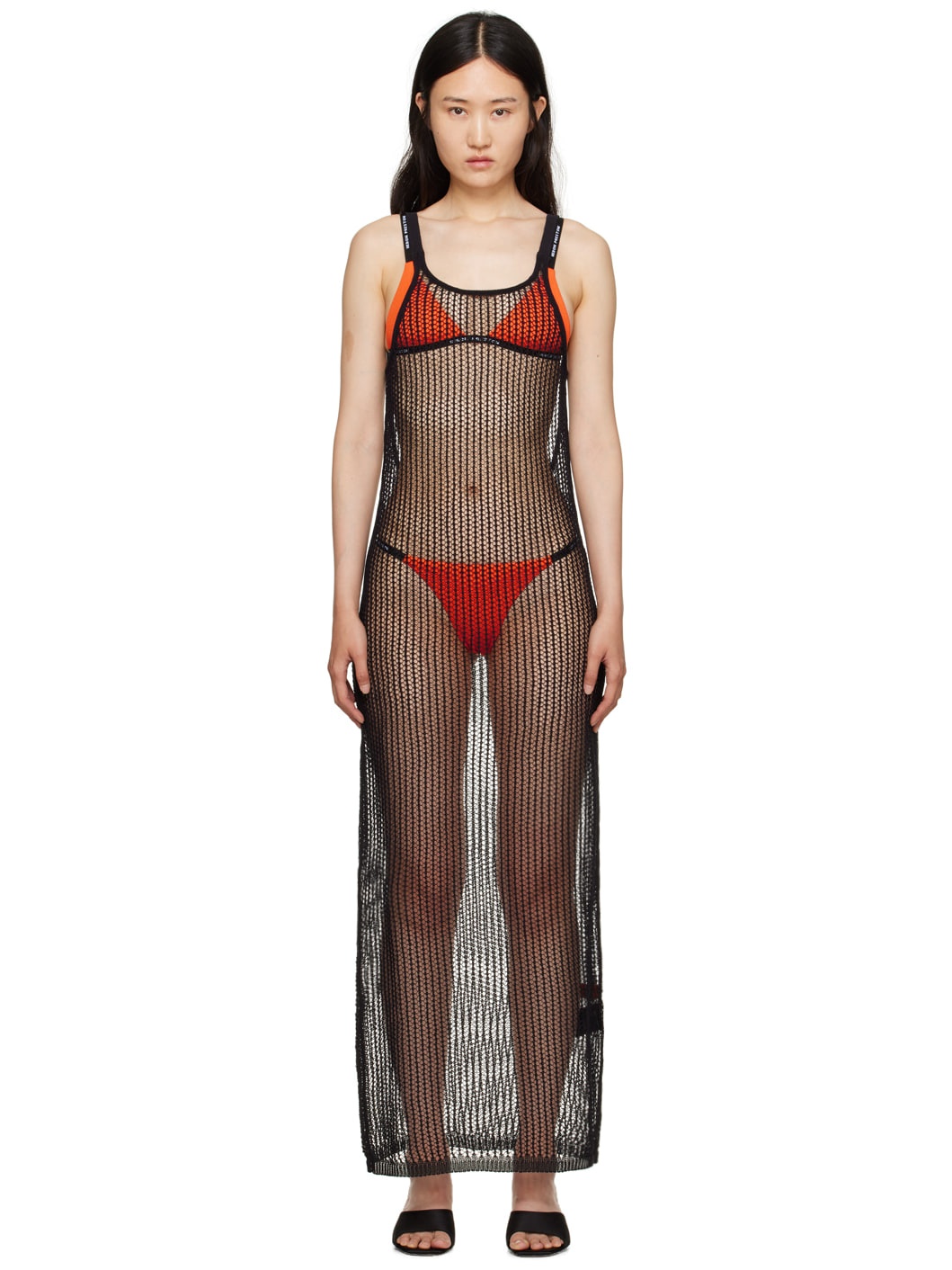 Open knit cotton dress. · Scoop neck · Rib knit hem · Fixed spaghetti shoulder straps · Logo patch at low back Supplier color: Black/White 100% cotton. Made in Italy 231967F055002