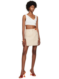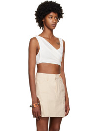 Semi-sheer knit stretch viscose tank top. · V-neck · Twisted accent at cropped hem · Halter strap · Logo patch at low back Supplier color: White/No color 99% viscose, 1% elastane. Made in Portugal 231967F111006