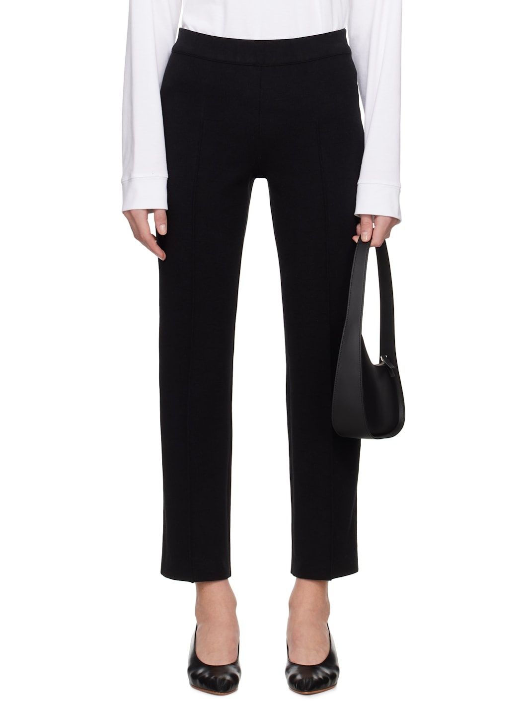 Knit stretch cotton-blend trousers. Jacquard check pattern throughout. · Elasticized waistband · Pinched seam at legs · Mock welt pockets at back Supplier color: Black 68% cotton, 28% polyamide, 4% lycra. Made in Italy 251278F087026