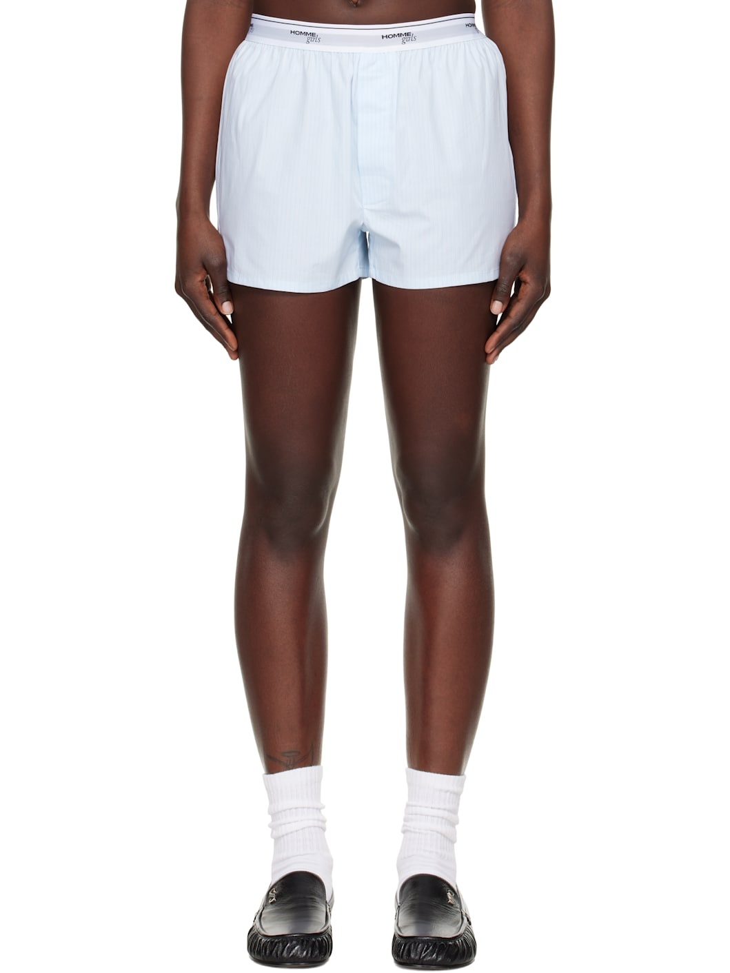 Stretch cotton poplin boxer-style shorts. Stripes throughout. · Logo-woven elasticized waistband · Button fly Supplier color: Ticking stripe 96% cotton, 4% elastane. Made in Italy 251783F088003