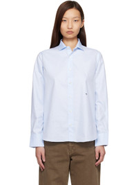Lightweight cotton twill shirt. · Spread collar · Button closure · Embroidered logo at waist · Shirttail hem · Barrel cuffs · Box pleat at back · Logo-engraved hardware Supplier color: Chambray Blue 100% cotton. Made in Italy 261783F109006