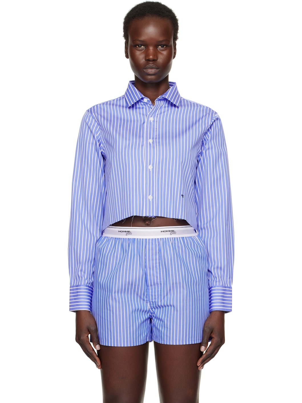 Striped Cotton Cropped Shirt blue