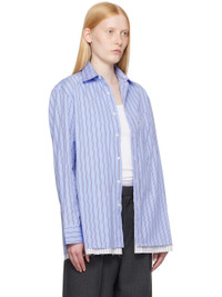Cotton poplin shirt-style minidress. Stripes throughout · Spread collar · Button closure · Logo flag and patch pocket at chest · Logo embroidered at front · Raw edge at tiered hem · Adjustable buttoned barrel cuffs · Box pleat at back yoke · Logo-engraved mother-of-pearl hardware Supplier color: Japanese blue stripe 100% cotton. Made in Italy 252783F052001