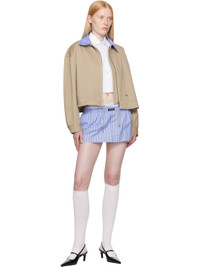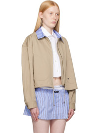 Cotton gabardine bomber jacket. · Striped cotton poplin spread collar · Zip closure · Welt pockets · Logo embroidered at front · Concealed drawstring at hem · Dropped shoulders · Adjustable press-stud barrel cuffs · Logo patch at back · Unlined Supplier color: Khaki 100% cotton. Made in Italy 252783F058001