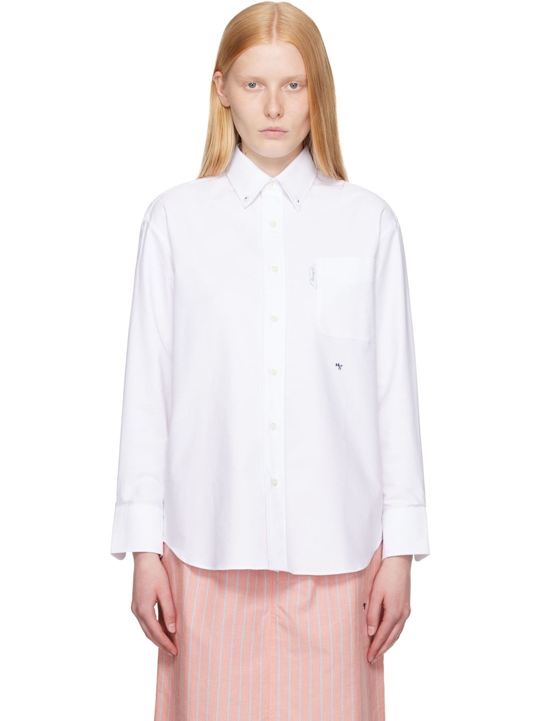 Cotton oxford cloth shirt. · Spread collar · Button closure · Logo flag and patch pocket at chest · Logo embroidered at front · Shirttail hem · Adjustable buttoned barrel cuffs · Button fastening at back collar · Twin pleats at back yoke · Logo-engraved mother-of-pearl hardware Supplier color: White oxford 100% cotton. Made in Italy 252783F109006