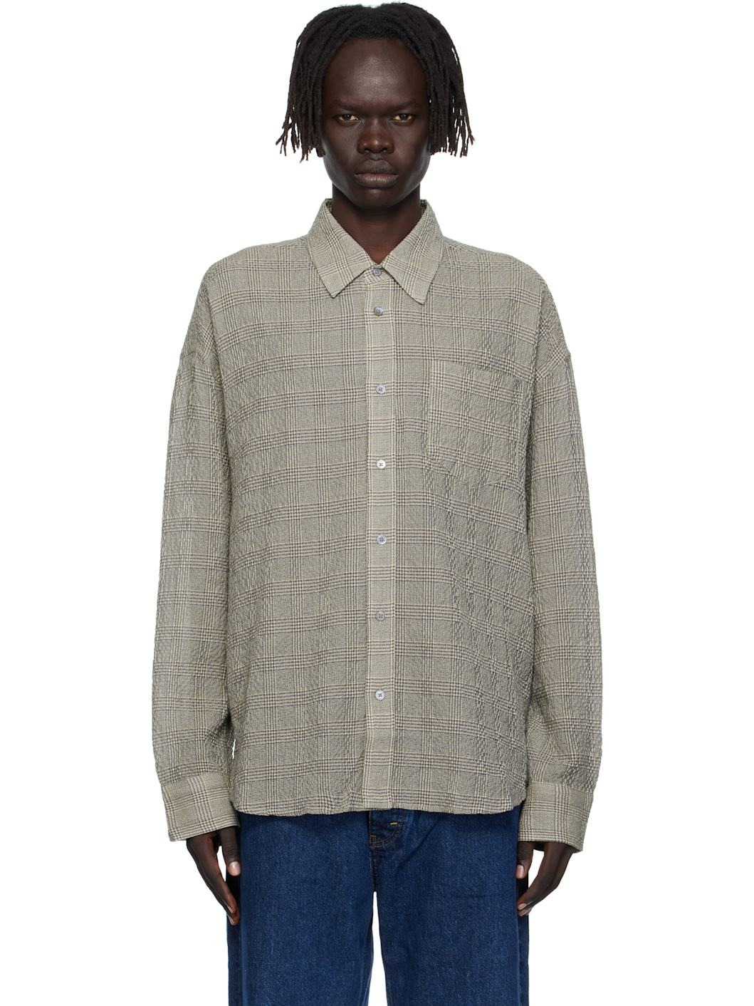 Stretch cotton- and lyocell-blend seersucker shirt. · Check pattern throughout · Spread collar · Button closure · Patch pocket at chest · Shirttail hem · Dropped shoulders · Adjustable buttoned barrel cuffs · Box pleat at back yoke · Mother-of-pearl hardware Supplier color: Crinkled grey check 67% cotton, 32% lyocell, 1% elastane. Made in Turkey 252995M192002
