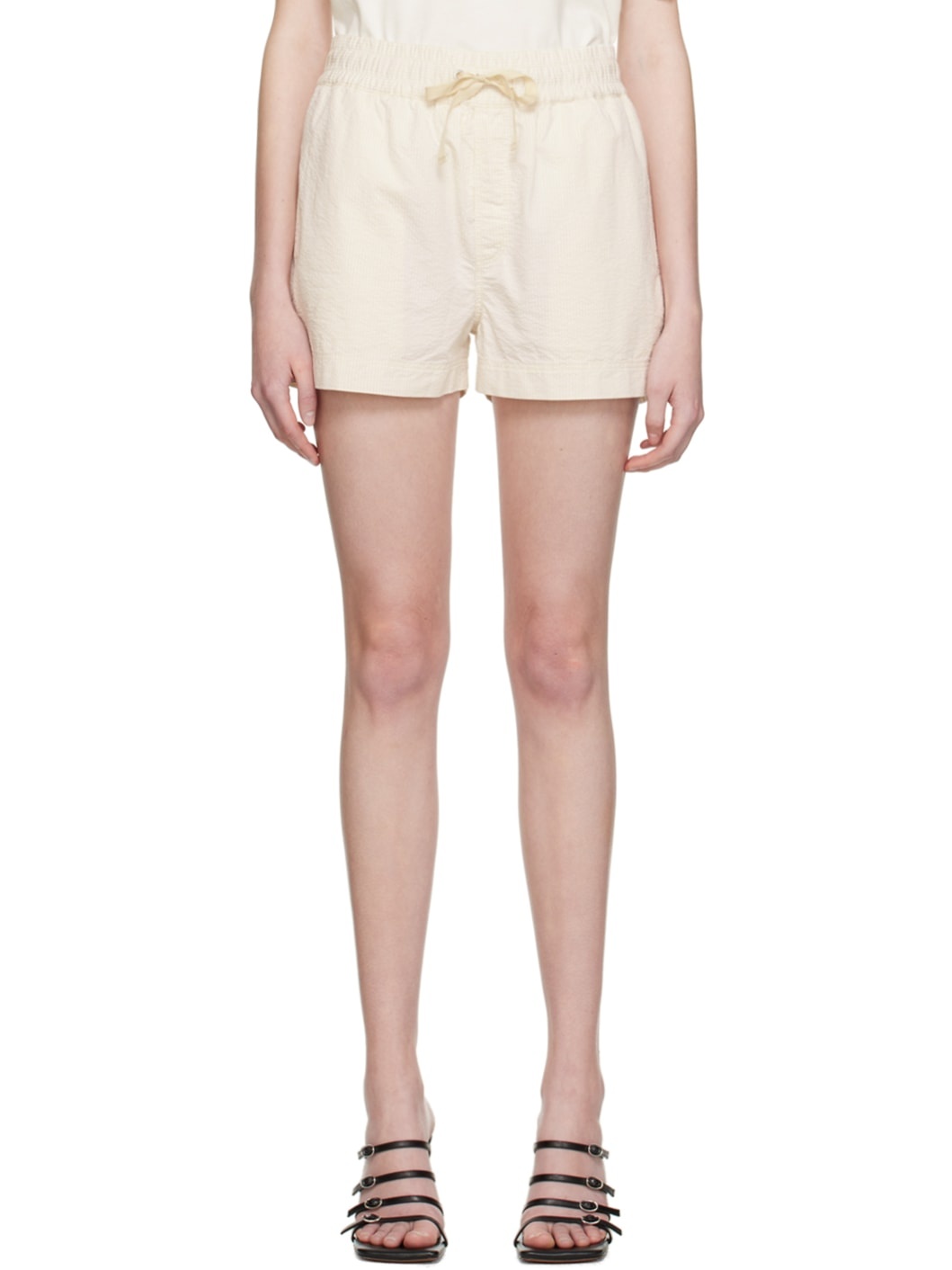 Cotton seersucker shorts. · Drawstring at elasticized waistband · Three-pocket styling · Mock-fly · Vented outseams Supplier color: Off-white 100% cotton. Made in Turkey 231995F088000