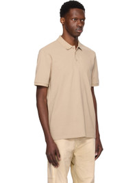 Beige Cotton Piqué Logo Print Polo