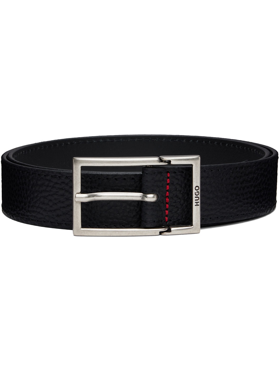 Pebble-grained leather belt. · Logo-engraved pin-buckle fastening · Silver-tone hardware · W1.25" Supplier color: Black Leather. Made in Romania 252084M131003