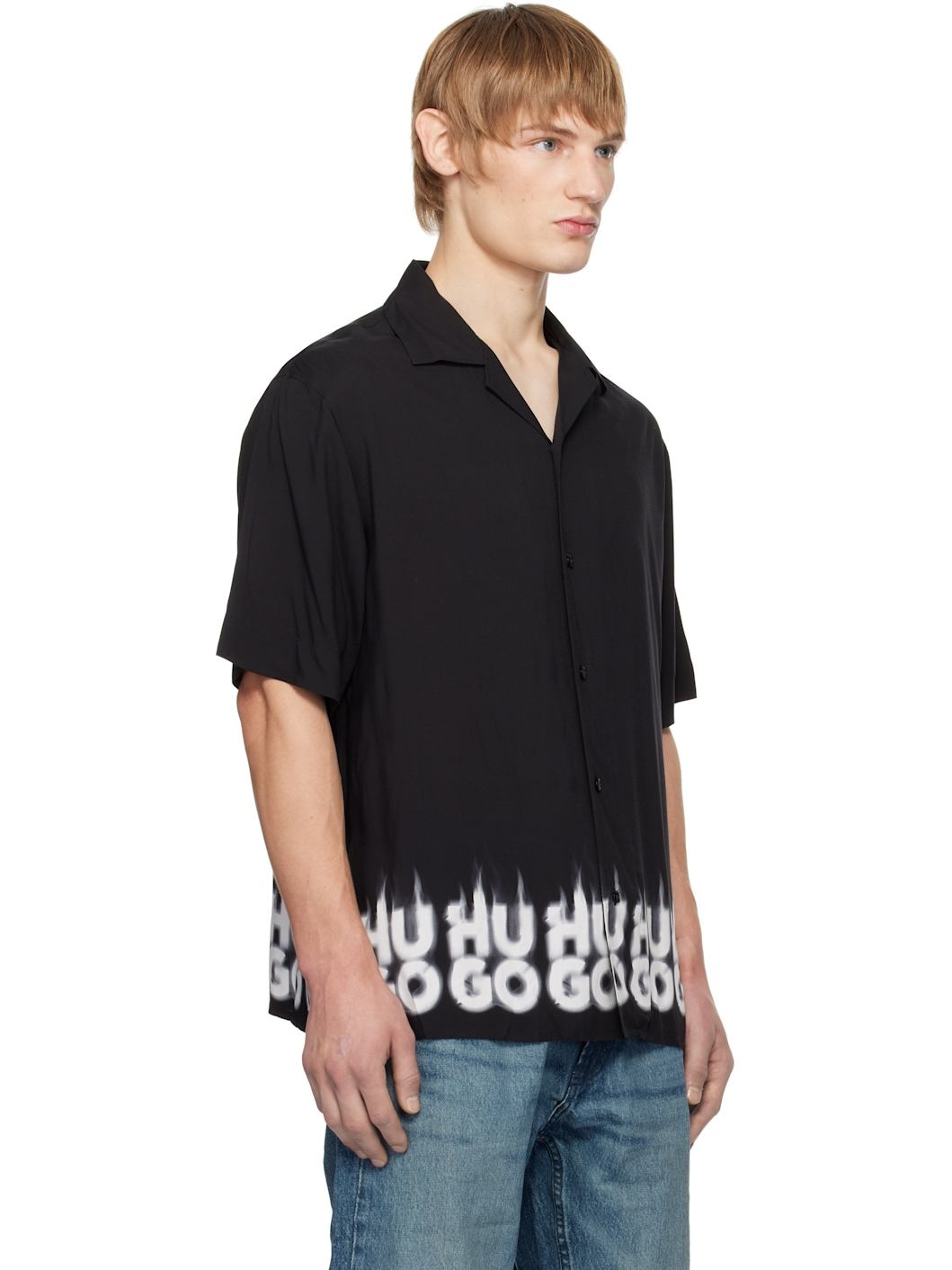 Black Oversized-Fit Smoke Logo-Print Hem Shirt