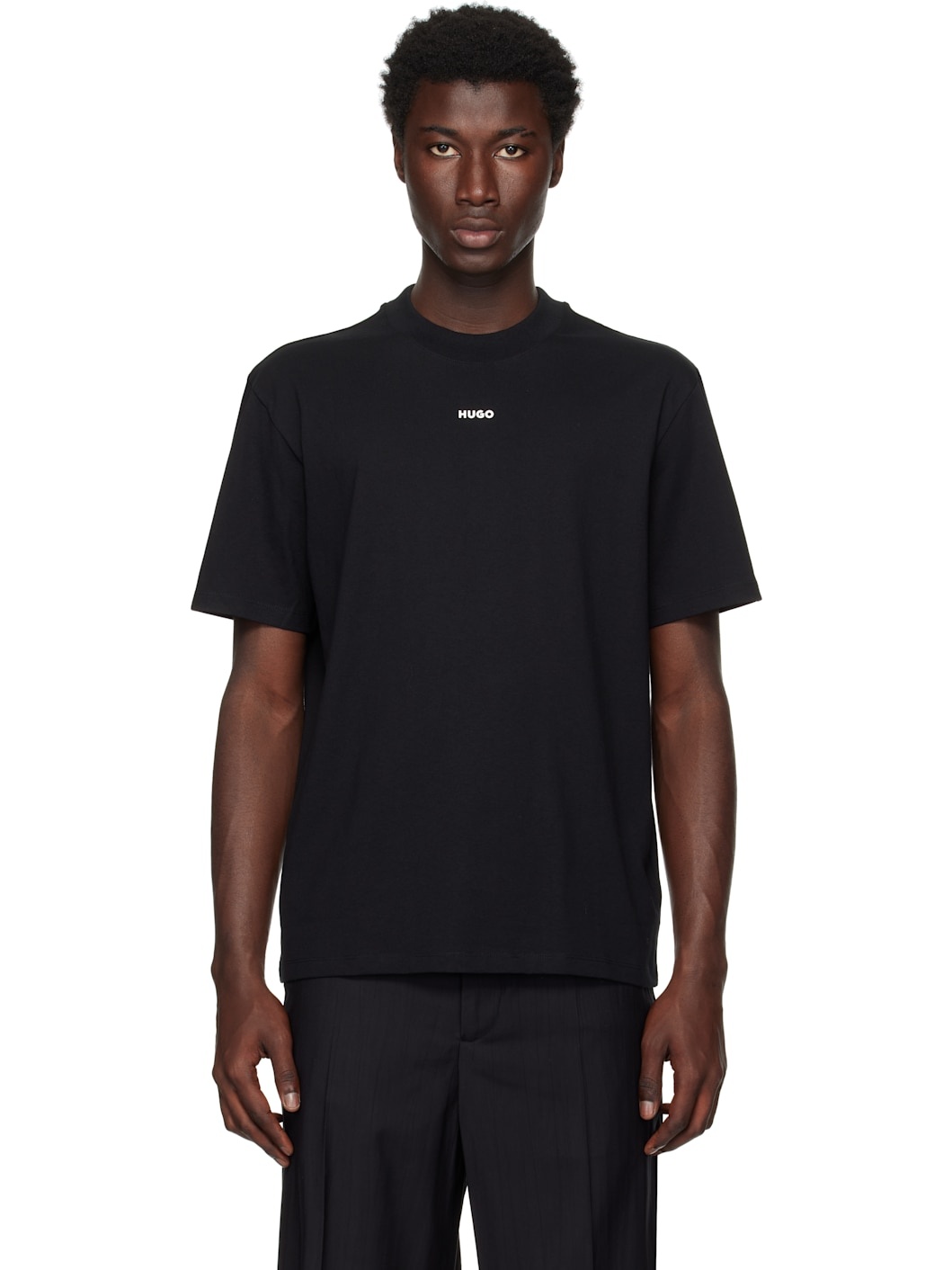 Cotton jersey T-shirt. · Rib-kit crewneck · Logo printed at chest · Dropped shoulders Supplier color: Black 100% cotton. Made in Portugal 252084M213001