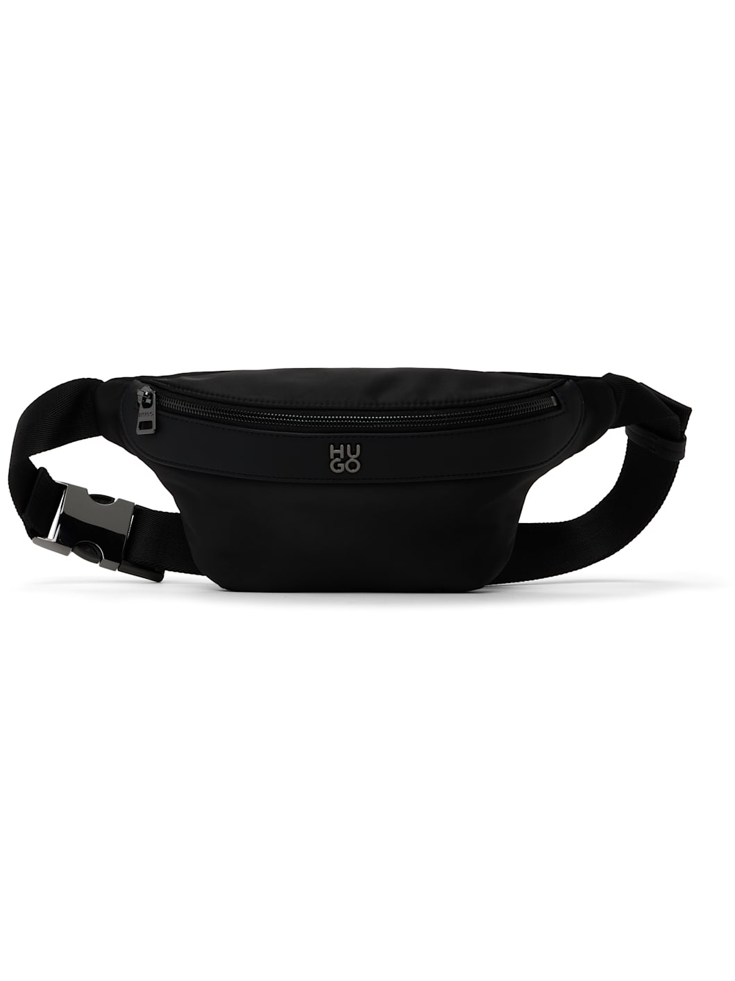 Twill belt bag in black. · Adjustable press-release crossbody strap · Logo hardware at face · Zip closure · Patch pocket at interior · Logo-woven taffeta lining · H5" x W11" x D3" Supplier color: Black Textile. Made in Cambodia 252084M171007