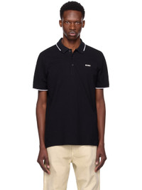 Stretch cotton pique polo. · Striped rib-knit spread collar and cuffs · Three-button placket · Logo bonded at chest · Tennis-tail hem Supplier color: Black Body: 93% cotton, 7% elastane. Trim: 100% cotton. Made in Bangladesh 252084M212016