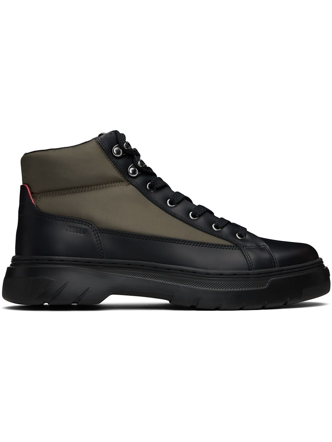 Ankle-high canvas and faux-leather boots. · Lace-up closure · Logo embossed at padded tongue · Padded collar · Text embossed at outer side · Jersey lining · Treaded rubber sole Supplier color: Black Upper: textile, synthetic. Sole: rubber. Made in Lao Peoples Republic 252084M255000