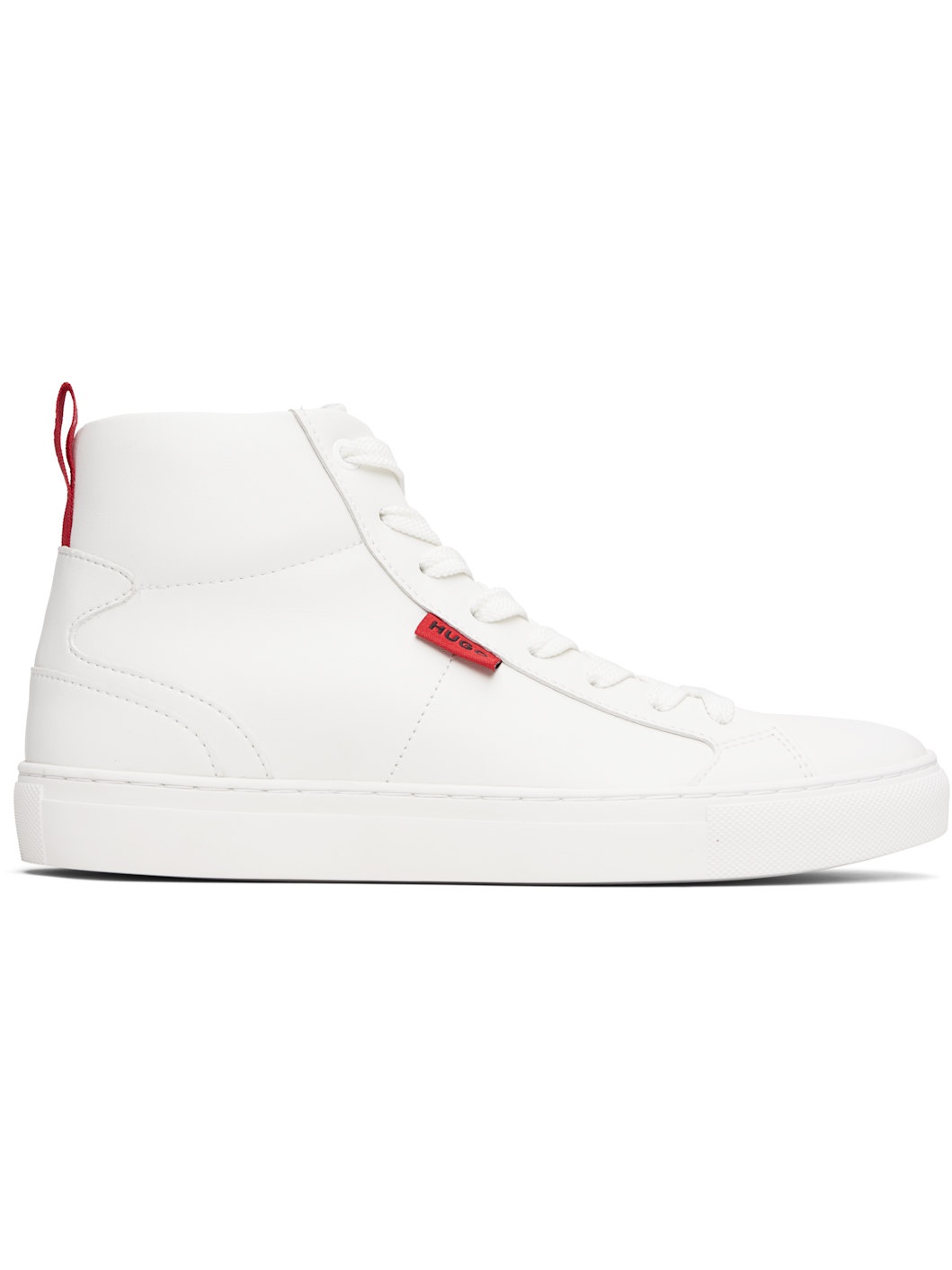 High-top buffed faux-leather sneakers in white. · Lace-up closure · Logo printed at padded tongue · Padded collar · Logo flag at outer side · Logo-bonded pull-loop at heel tab · Jersey lining · Treaded rubber sole Supplier color: White Upper: synthetic. Sole: rubber. Made in Lao Peoples Republic 252084M236000