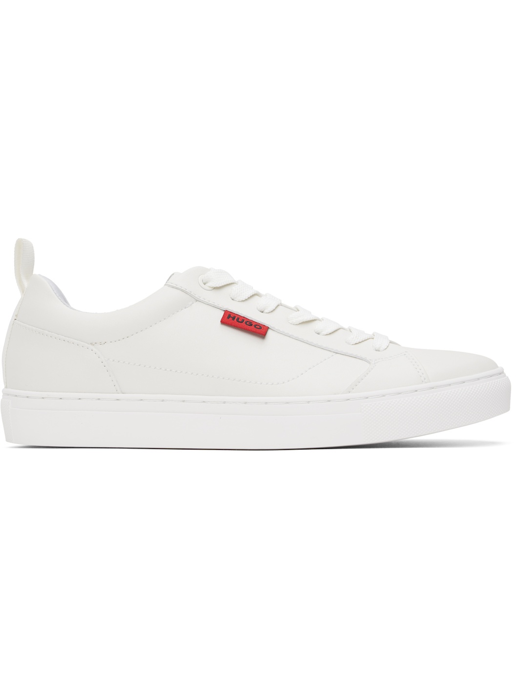 Low-top buffed faux-leather sneakers in white. · Lace-up closure · Logo printed at padded tongue · Padded collar · Logo flag at outer side · Logo-bonded pull-loop at heel collar · Jersey lining · Treaded rubber sole Supplier color: White Upper: synthetic. Sole: rubber. Made in Lao Peoples Republic 251084M237011