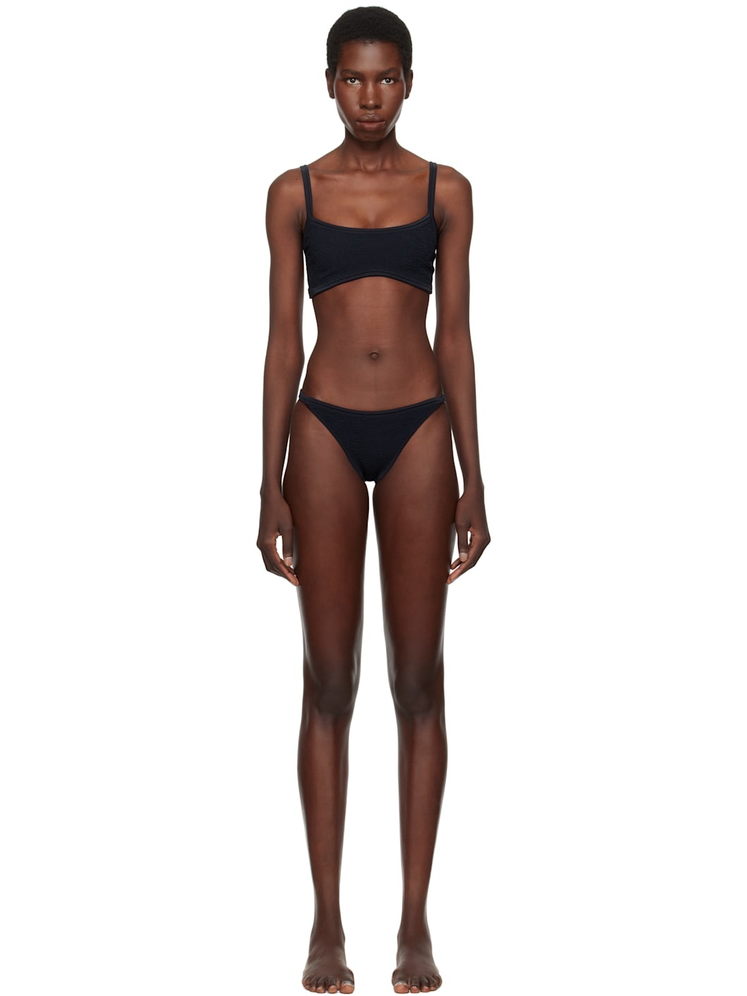 Shirred stretch nylon jersey bikini top. · Square neck · Fixed spaghetti straps · Unlined Shirred stretch nylon jersey bikini bottom. · Elasticized waistband · Unlined This product uses Original Crinkle™ Technology. Fits US sizes 2-12. Supplier color: Black 97% polyamide, 3% elastane. Made in Morocco 251431F105060