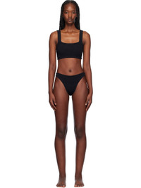 Shirred stretch nylon jersey bikini top. · Square neck · Fixed shoulder straps · Unlined Shirred stretch nylon jersey bikini bottom. · Elasticized waistband · Unlined This product uses Original Crinkle™ Technology. Fits US size 2-12. Supplier color: Black 97% polyamide, 3% elastane. Made in Morocco 251431F105006