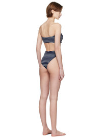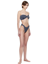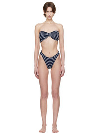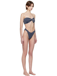 Shirred stretch nylon jersey bandeau-style bikini top. Stripes throughout. · Knotted accent at sweetheart neck · Unlined Shirred stretch nylon jersey bikini bottom. Stripes throughout. · Elasticized waistband · Unlined This product uses Seamless Crinkle™ Technology. Fits US size 2-12. Supplier color: Navy/White 97% polyamide, 3% elastane. Made in Morocco 251431F105026
