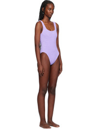 Shirred stretch nylon jersey one-piece swimsuit. · Square neck · Fixed shoulder straps · Low back · Unlined This product uses Original Crinkle™ Technology. Fits US size 2-12. Supplier color: Lilac 97% polyamide, 3% elastane. Made in Morocco 251431F103005