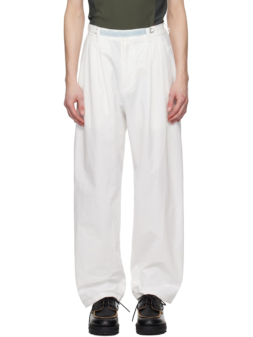 Cotton poplin trousers. · Belt loops · Self-tie belt with beaded detailing at waistband · Four-pocket styling · Zip-fly · Pleats at front Supplier color: White 100% cotton. Made in South Korea 251429M191000