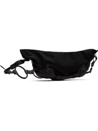 Handcrafted canvas messenger bag in black. · Sculptural rubber overlays throughout · Ratchet bindings at adjustable crossbody strap · Detachable strap extension strap · Two-way zip closure · Zip pocket at interior · Canvas lining · H7" x W19" x D4.5" Supplier color: Black matt Textile, rubber. Made in Italy 251187M171003