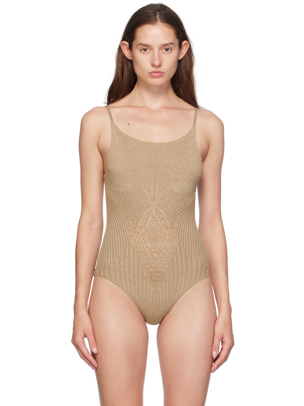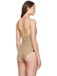Handcrafted knit and rib knit stretch cotton bodysuit. · Square neck · Pointelle knit detailing at front · Elasticized spaghetti straps · Logo flag at back · Low back Supplier color: Sand 90% cotton, 10% elastane. Made in Indonesia 242541F358004
